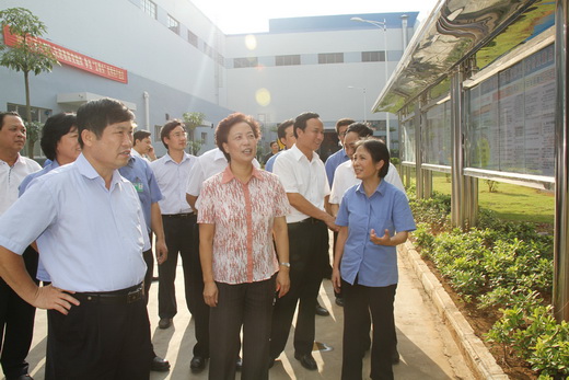 陈际瓦(前中)在刘子福(前右)李天生(前左)的陪同下参观玉柴铸造中心