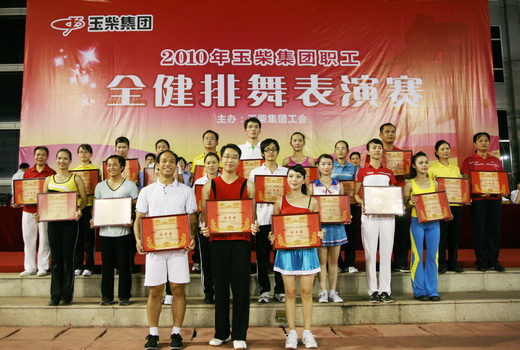 8月31日晚上,玉柴英华小区体育广场灯火辉煌,来自玉柴集团各单位的23个代表队共1700名职工在这里表演了大型的全民健身排舞(简称全健排舞)。物流公司代表队、铸造厂代表队、销售专卖公司代表队从23个代表队中脱颖而出获得了表演赛的特等奖。