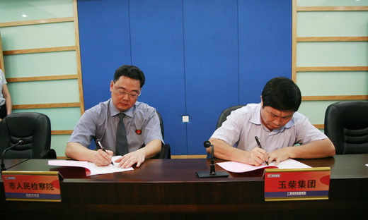 为了进一步加强与玉柴集团的工作联系,为玉柴实现“十二五”宏伟蓝图和跨越式发展营造良好的法治环境,从而更好地为玉林市经济社会发展服务,8月18日,玉林市人民检察院与玉柴集团在动力大厦举行了加强工作联系启动仪式,市检察院副检察长刘红云与玉柴集团公司董事局副主席李天生分别在《关于加强工作联系的意见》意见书上签字。这标志着检企协作迈上了新台阶。