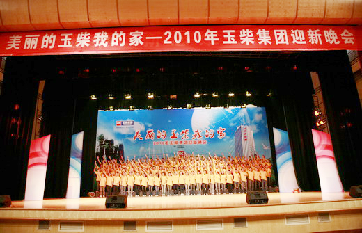 8月16日晚,“美丽的玉柴我的家——2010年玉柴集团迎新晚会”在文化中心欢乐上演。玉柴集团公司党委副书记张嘉莎、股份公司党委书记梁萍、集团公司工会主席饶英贤、股份公司总经济师王炜等领导,与新员工们欢聚一堂,共同欣赏晚会节目。