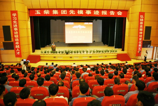 举行先模事迹报告会是玉柴集团创先争优活动的一项重要内容,目的是宣传先模人物的感人事迹,弘扬先模人物的精神和品格,在集团内营造学习典范、赶超典范的良好氛围,进一步传播玉柴企业文化。为了使这场报告会收到良好的效果,集团公司党委精心地进行了策划,在每名先模人物作报告之前播放的电视短片与报告结束之际的现场采访,使报告会别开生面。
