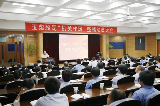 股份公司是集团所有板块的核心,既是技术的核心、创新的核心,更是管理和人才的核心。股份公司这支队伍的水平可以反映出集团的队伍水平。股份公司是生产发动机的,发动机属于汽车行业的中间产品,处在上游与下游之间,生存和发展危机时刻存在。我们必须要在人才团队、企业文化建设方面形成竞争优势。因为玉柴一直保持在行业领先的地位,队伍滋生了自满、麻木的思想,出现这样那样的懈怠现象,这是极其危险的。 我们这支团队必须要打造成行业最优秀的团队,要有过硬的作风,而过硬的作风是靠打造出来的。“机关作风”整顿,是切实解决领导干部和职能部门突出作风问题、建设高效团队的现实需要,是适应玉柴事业高速发展、实现集团“十二五”宏伟蓝图的全局考虑。