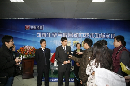 晏平说,“可再生空气混合动力技术功能实现”发布会的召开,表明我们玉柴一贯重视新产品的开发,重视与国际一流大学研发方面的合作,同时意味着玉柴有极强的生命力和健康的体魄。经过玉柴与英国布鲁奈尔大学的共同努力,于2009年12月完成了两台样机试制和相关功能试验,实现了可再生压缩空气回收、储存、发动机起停控制。下一步,玉柴将进一步做好可再生空气混合动力的推广应用工作,凭借可再生空气混合动力技术功能优势和良好的社会效应,相信一定会得到广泛应用,为我国的节能减排工作做出更大的贡献。晏平希望,玉柴工程研究院和所有的员工共同努力,为实现这款机型大规模的投放市场做出我们应有的贡献。