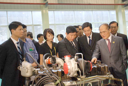越南国家常务副总理阮生雄(前右一)参观玉柴气体燃料机