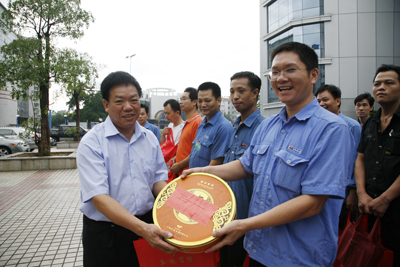 工人技师被晏平称之为“玉柴的宝贝”,并且在他特别的关心关爱之下,玉柴营造了浓郁的尊重工人技师的氛围。三发厂技师许燕妮对记者说:“今天接到通知到这里来领取晏主席送给我们的中秋慰问月饼,我们技师都很激动,也很感动,这更加坚定了我们技师做一行、爱一行、精一行的决心。”二发厂技师何祥金则高兴地将月饼对着镜头诉说了心里话:“不管是在工作上还是生活中,晏主席都给了我们很多的关爱,我决心将关爱化为动力,以十二分的努力投入到工作中去。”