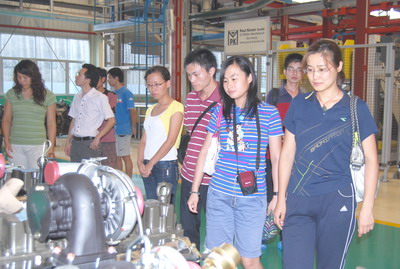 8月18日下午, 在科技日报广西记者站站长江东洲的带领下,科技日报记者团一行10人到玉柴参观考察。玉柴集团秘书长、股司党委副书记郭德明陪同参观。 在参观玉柴试验室、重机加工生产线、重机装试生产线时,郭德明热情为记者们介绍玉柴研发、生产设备、产品构成、机构人员设置等情况,对玉柴雄厚的研发实力,国际先进、国内领先的生产设备,宽敞明亮的车间,记者们啧啧称赞,并对玉柴专业技术人才的锻造、挖掘产生了浓厚的兴趣。 (杨丽)