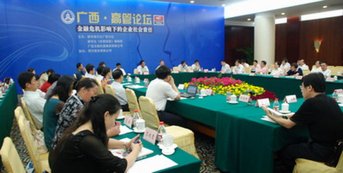 7月3日下午,主题为“金融危机影响下的企业社会责任”的“广西 高管论坛”在广西南宁荔园山庄举行。论坛由新华社《高管信息》编辑部、新华社广西分社、广西玉柴机器集团有限公司共同主办,同方股份有限公司协办。论坛邀请政府官员、专家学者和企业家共同研讨应对危机的思路,探讨在危机中如何更好地承担起责任,同时对广西的企业社会责任进行展示。玉柴作为典范受到广泛关注。