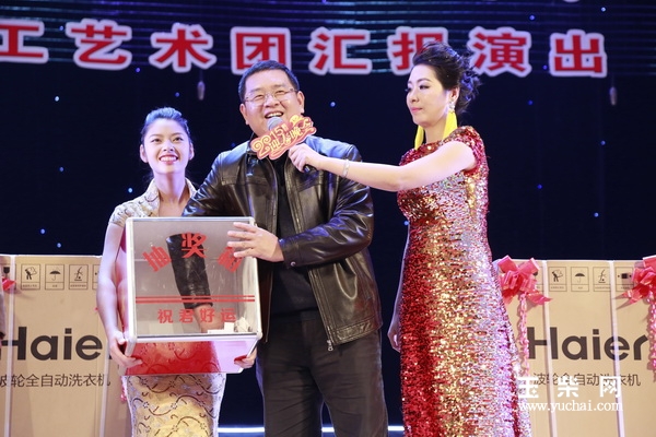 古堂生等公司领导与现场职工们一起互动,唱起激昂的歌,跳起欢快的舞蹈。期间,古堂生向全体玉柴人在过去一年的辛勤付出表示感谢,与吴其伟等领导为现场观众抽出幸运大奖,祝愿大家在新的一年里身体健康,心想事成,工作顺利,万事顺意!
