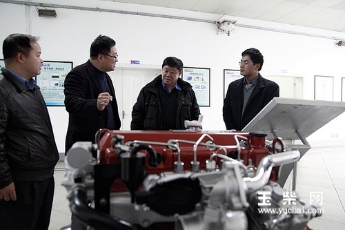 玉柴股份销售公司副总经理黄毅陪同客人参观了玉柴铸造中心、试验中心、重机加工车间、重机装试车间、动力大厦展厅。