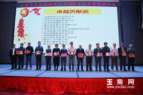会议当天,玉柴马石油润滑油对一批为公司销售业绩作出突出贡献的经销商单位进行表彰和奖励,并颁发荣誉证书。