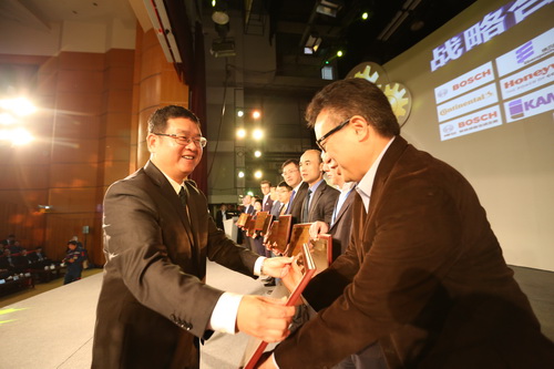 发布会上,玉柴与东风股份、东风商用车等22家卡车企业,宇通客车、欧辉客车等8家客车企业举行了战略合作签约仪式,并给52家战略合作供应商授牌。战略供应商代表博世汽车柴油系统有限公司副总经理缪钰铭、重要客户代表东风商用车有限公司总经理助理杨声亮和北汽福田汽车股份有限公司副总裁范现军发言,表达了与玉柴携手共赢、聚力闯关的决心和信心。