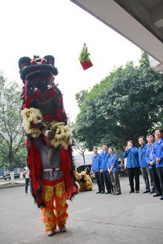 正月初八早上八点,玉柴两司门口一派新春欢腾。在喧天的锣鼓声中,瑞狮齐聚公司门口,欢乐祥舞,恭贺新春。当天一早,