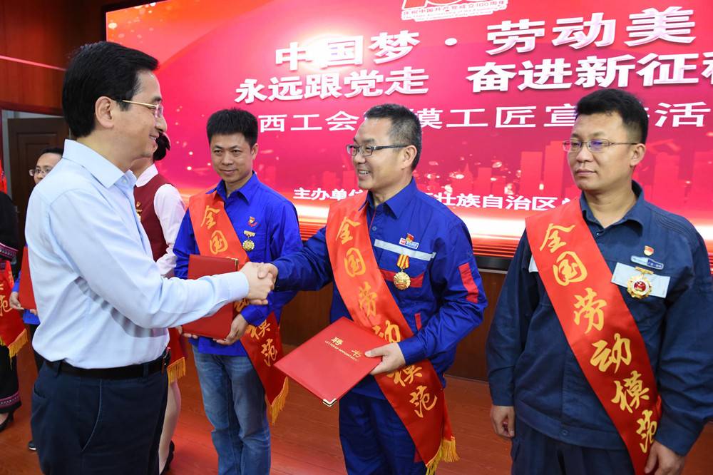 谱好“产改”工作协奏曲,建设一流产业工人队伍。突出抓好“思想引领、建功立业、素质提升、地位提高、队伍壮大”五项重点工程,不断完善党群联络机制、激励机制、人才培育机制、服务保障机制,搭建“匠心+创新”平台,铺好成才“进阶路”、激发创新创造“源动力”,企业创新活力显著增强。五年来,玉柴建成国家级人才建设平台8个,自治区人才建设平台17个;累计打造劳模工匠、技能大师等工作室23个(其中国家级5个、自治区级14个),培育出“国家卓越工程师”林铁坚、“全国技术能手”李海桦、“全国劳动模范”王辉、“大国工匠入围人选”池昭就等一批“新质先锋”,为企业高质量发展锻造了一支有技能、有发展、有地位的高素质产业工人大军,荣获自治区产业工人队伍建设改革示范企业。