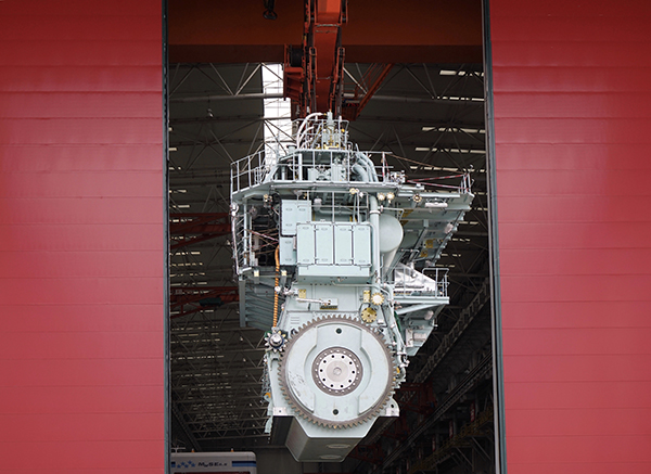 玉柴船动具备WINGD、曼恩二冲程发动机生产许可,可生产制造YCMP-WIN GD 和YCMP-MAN B&W系列船用低速发动机,年产能110台/120万马力。